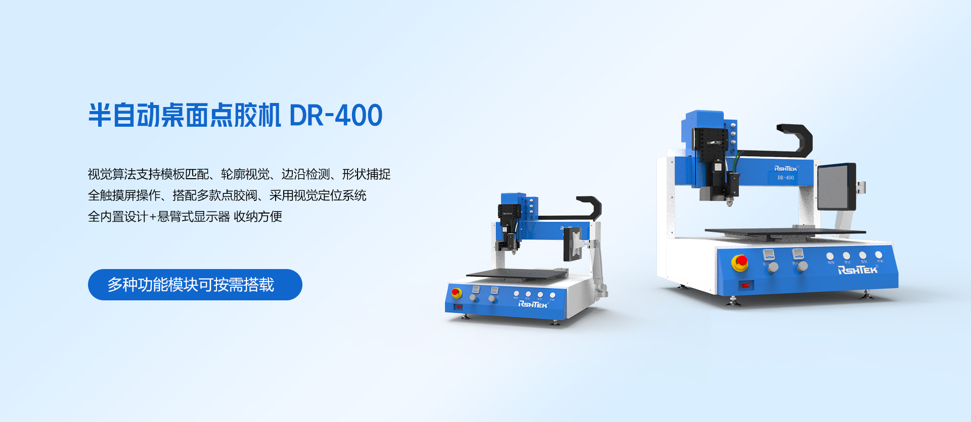 自動點膠機逐漸取代傳統的手工點膠,擁有更高的精度和速度,可實現自動化生產,小至半導體、LED等微米點膠,自動化點膠機實現高精高速的點膠工藝。RSHTEK扎根流體點膠行業10多年,廣泛應用于PCB和SMT組裝、半導體、電子產品、家電、汽車產品、LED戶外照明、醫療等行業,一站式解決點膠、傳輸、檢測等問題,實現制造業的生產速度飛躍,產品品質提升,升級智造產業,迎接智造新時代。